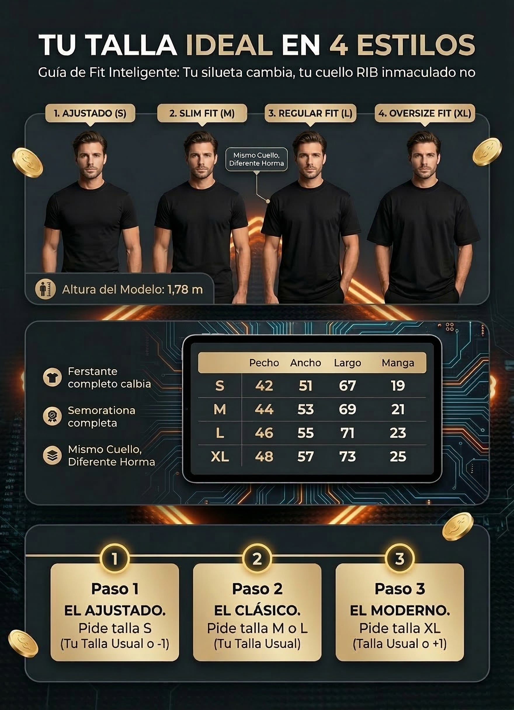 contamos con una guía de tallas precisa basada en medidas reales (pecho, largo y mangas).
